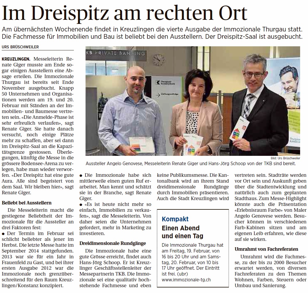 Kreuzlinger Zeitung vom 5. Februar 2016: Fachvorträge an der Immozionale